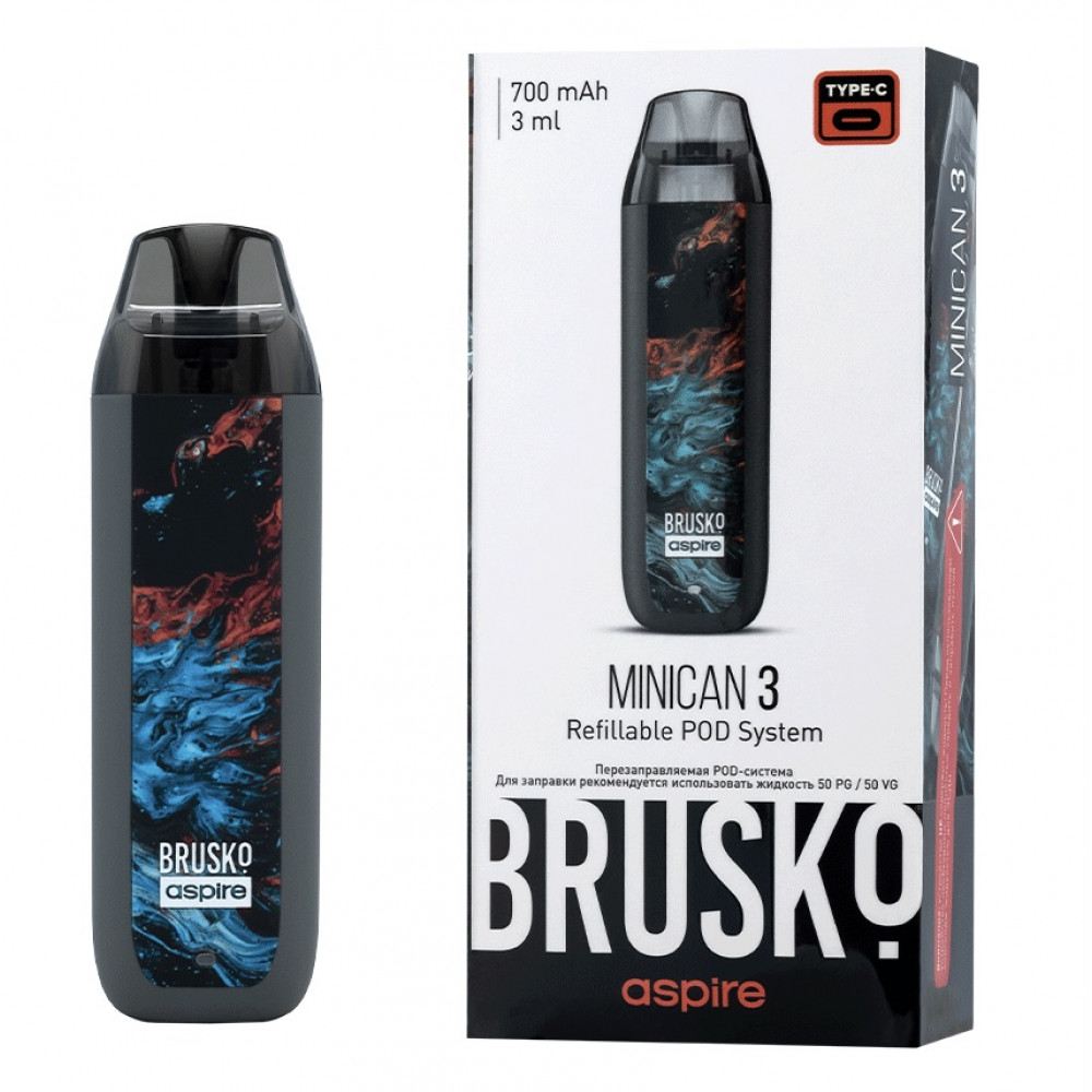 Перезаправляемая Под-Система Бруско Миникан 3 (Brusko Minican 3) 700 mah, Серый Флюид - купить в Глазове